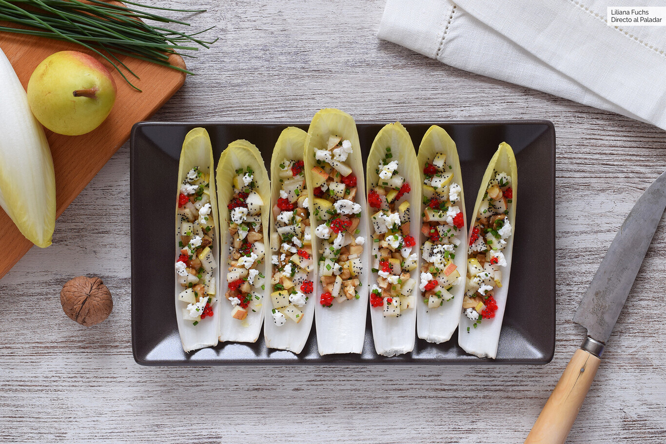 2) Antipasto fresco che sembra chic: barchette croccanti con pera, noci e formaggio